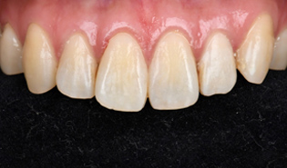 上顎前歯の隙間を何とかしたいとの理由により来院。また全体的に歯を白くしたいとの要望もありました。まずはホワイトニングで自分の歯を自然な白さにし、その上で、歯の色を合わせたラミネートベニアを使い、隙間のない前歯の形に仕上げました。修復した前歯4本は、ほとんど削る事なく理想的な見た目になりました。セラミックは変色しませんが、自分の歯は経年により少しずつ後戻りするため、ホームホワイトニングにて定期的にご自身でメンテナンスしていただいています。